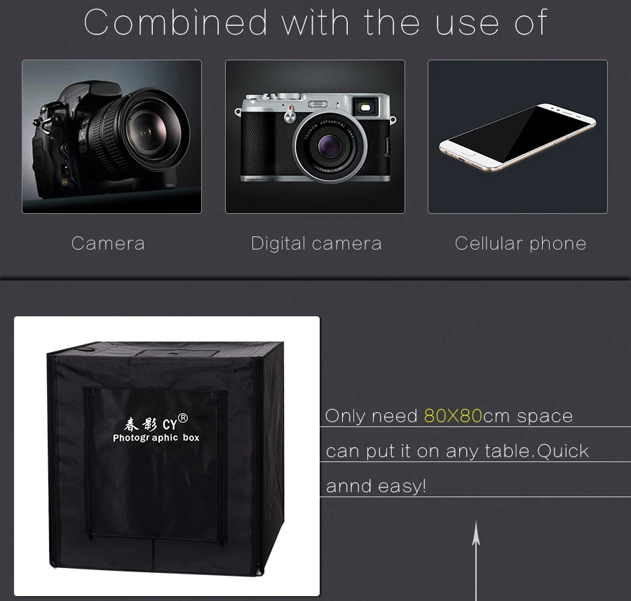 BEST free shipping39inch 80x80x80cm Photo Studio light box LED soft box Shooting Light Tent photo box se