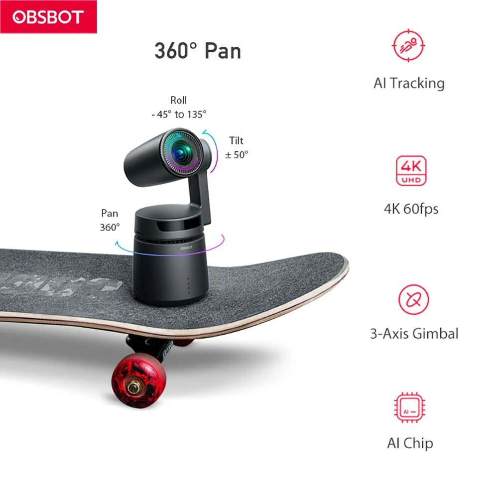 OBSBOT 3 Axis Shooting 360 4k 60fps Stabilized Handheld Camera Auto-Director AI Tracking Selfie Vid